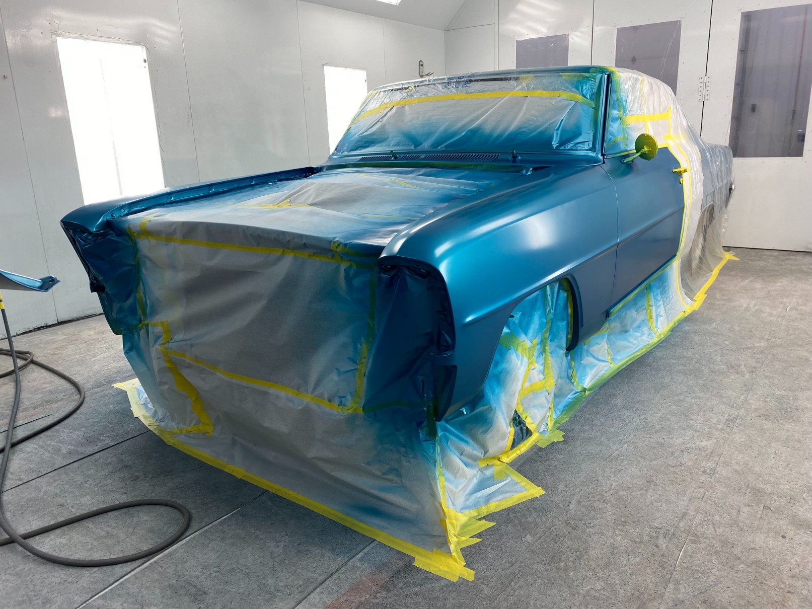 This 1966 Chevy II was brought in for a few upgrades and partial paint. We obliged by painting all suspension components in PPG DBC and Vibrant clearcoat, as well as custom matched the paint to touch up and blend to a seamless, smooth, beautiful finish.